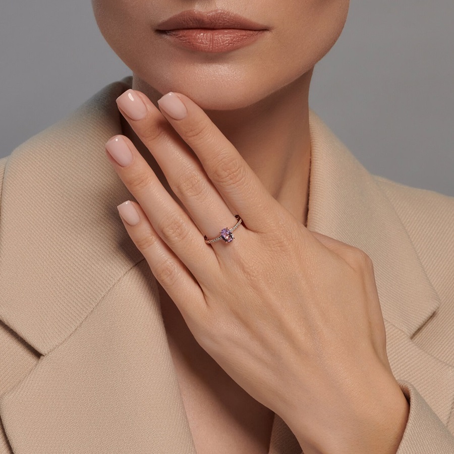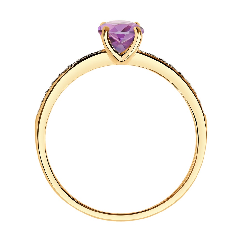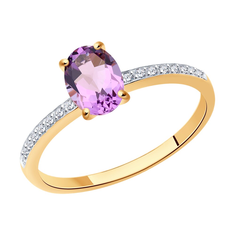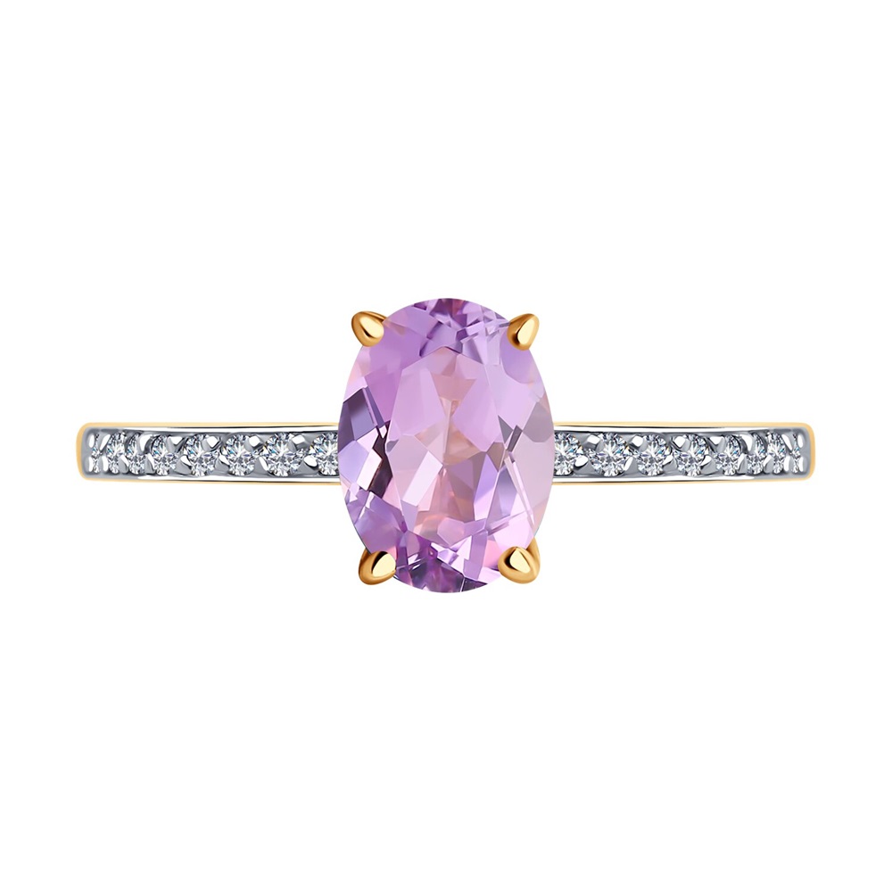 Нежное изящное кольцо изготовлено из красного золота 585 пробы с аметистом и дорожками из фианитов. Тонкое аккуратное кольцо с прозрачным и нежным сиянием привлекательного аметиста и искристых фианитов отлично дополнит повседневный женственный образ, подчеркнув красоту и очарование владелицы. Приобретайте ювелирное украшение выгодно в магазинах Мир Золота.
