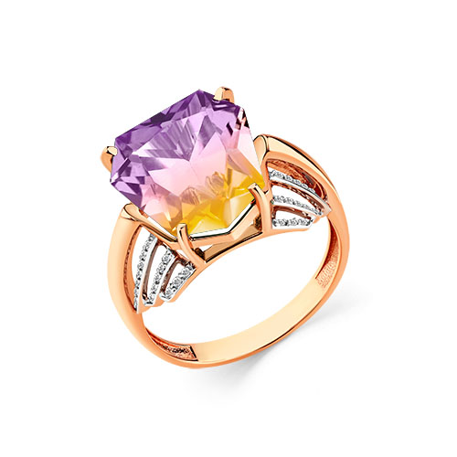 Кольцо из красного золота с аметрином и фианитами