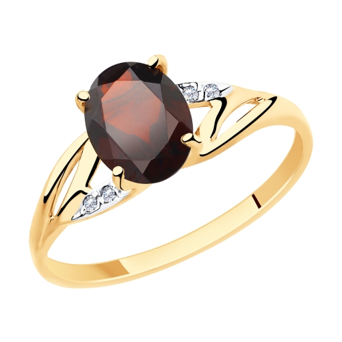Кольцо из красного золота 585 пробы с натуральным гранатом и фианитами привлекает своей красотой и ярким сиянием камней. Кристальный блеск фианитов выгодно раскрывает эффектное и сочное сияние граната. Украшение добавит выразительный акцент в очаровательный женственный образ. Приобретайте ювелирное украшение для себя или в подарок по выгодной цене в магазинах Мир Золота.
