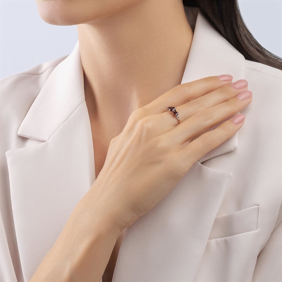 Привлекательное кольцо с натуральными гранатами и цветными фианитами выполнено из красного золота 585 пробы. Яркие выразительные гранаты насыщенного винного цвета эффектно смотрятся и проковывают взгляд. Кольцо отлично дополнит классический повседневный или элегантный вечерний образ, подчеркнув очарование и женственность владелицы. Приобретайте ювелирное украшение по выгодным ценам в магазинах Мир Золота.