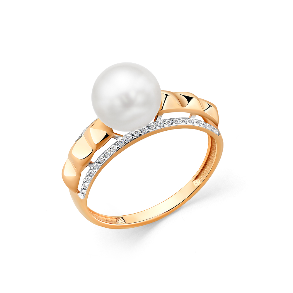 Кольцо из красного золота 585 пробы с натуральным жемчугом и дорожками сияющих фианитов подчеркнет очарование и женственность владелицы. Нежный акцент белого жемчуга привлекает внимание, украшение аккуратно смотрится на руке и комфортно в носке. Кольцо станет универсальным аксессуаром для любого образа. Приобретайте ювелирное украшение по выгодным ценам в магазинах Мир Золота.