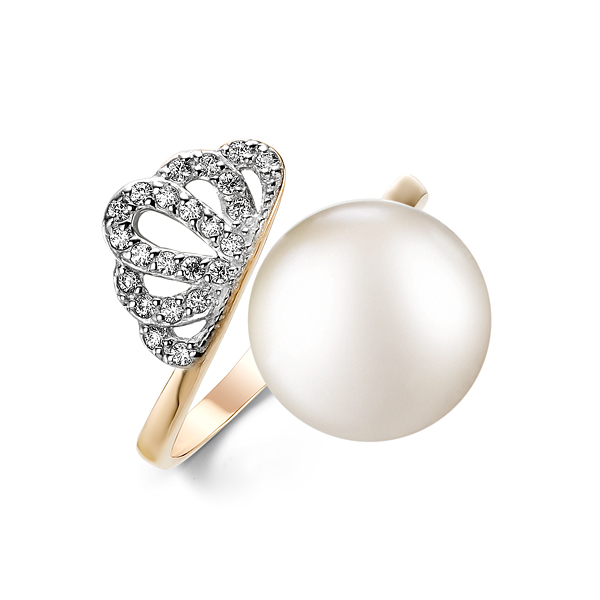 Кольцо из красного золота с жемчугом и фианитами