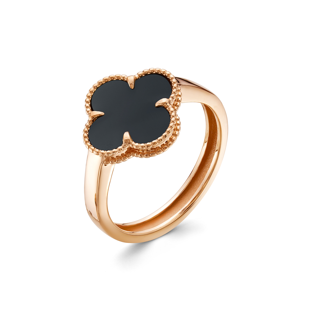 —Кольцо из красного золота с ониксом «Клевер»