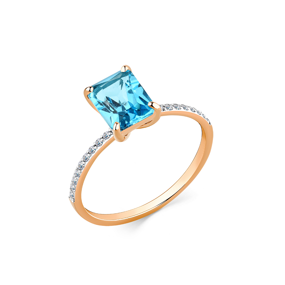 Кольцо из красного золота с топазом и фианитами