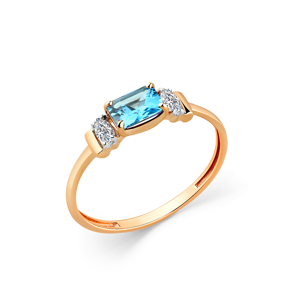Кольцо из красного золота с топазом и фианитами