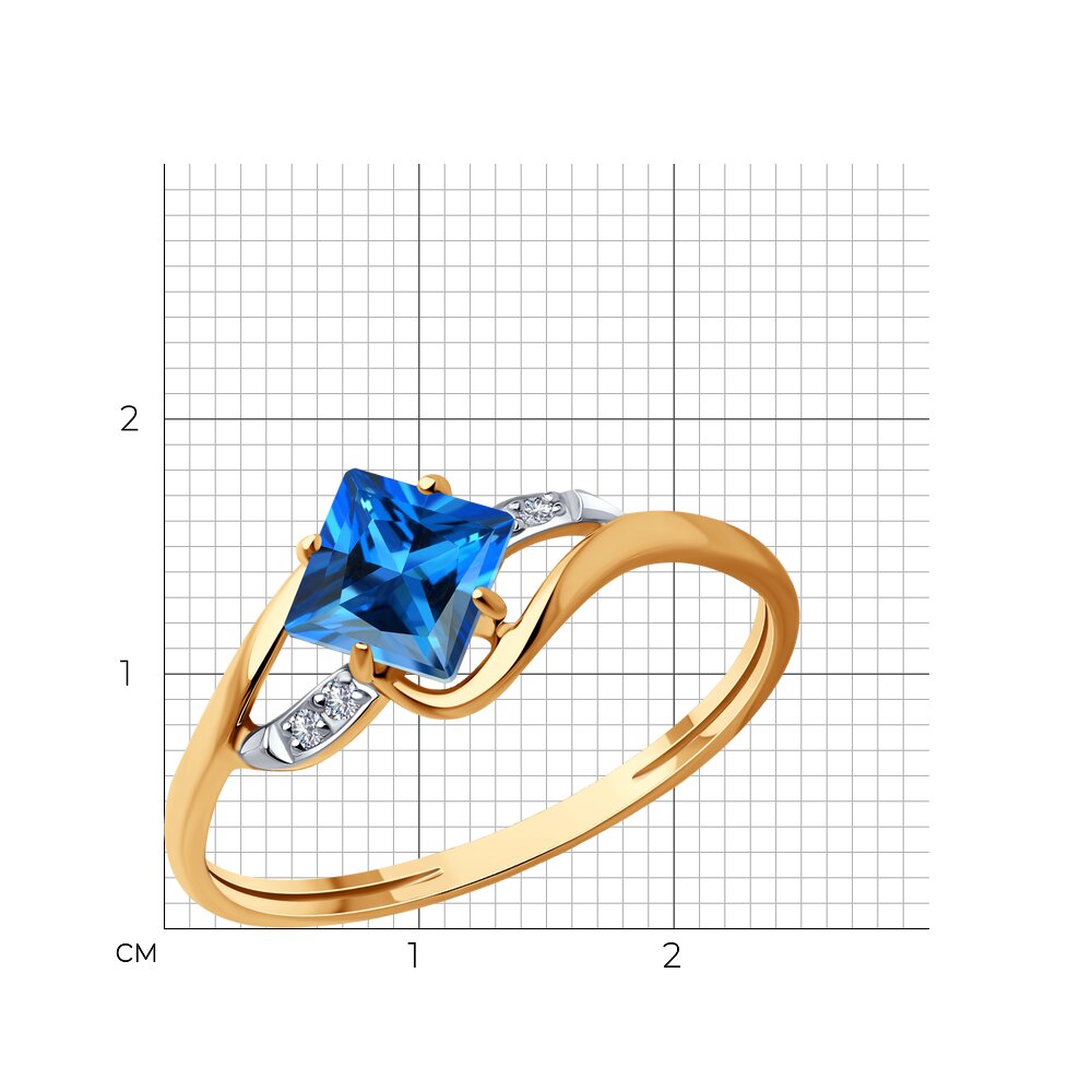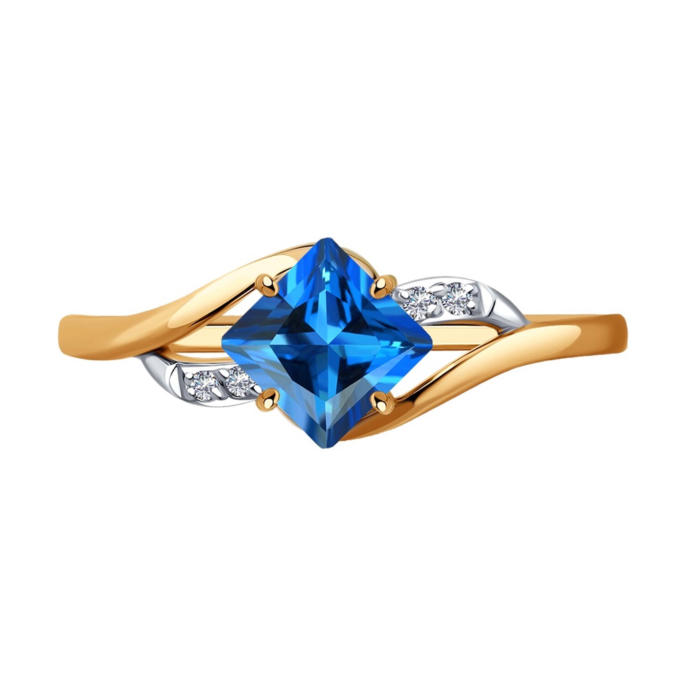 Изящное кольцо с ярким топазом Swarovski и кристальными фианитами изготовлено из красного золота 585 пробы. Утонченное кольцо с необычным топазом ярко-синего цвета обращает на себя внимание, и станет эффектным дополнением привлекательного женственного образа. Приобретайте ювелирное украшение в подарок выгодным ценам в магазинах Мир Золота.