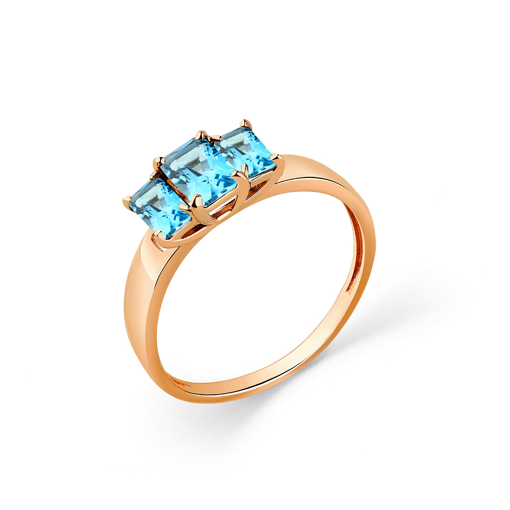 Кольцо из красного золота 585 пробы с голубыми топазами swiss эффектно подчеркнет красоту и изысканность образа владелицы. Мягкий блеск драгоценного металла идеально дополняет очаровательное сияние насыщенных ярких топазов популярной формы огранки. Украшение отлично подойдет как для повседневной носки, так и для вечернего мероприятия. Приобретайте кольцо для себя или в подарок выгодно в магазинах Мир Золота.