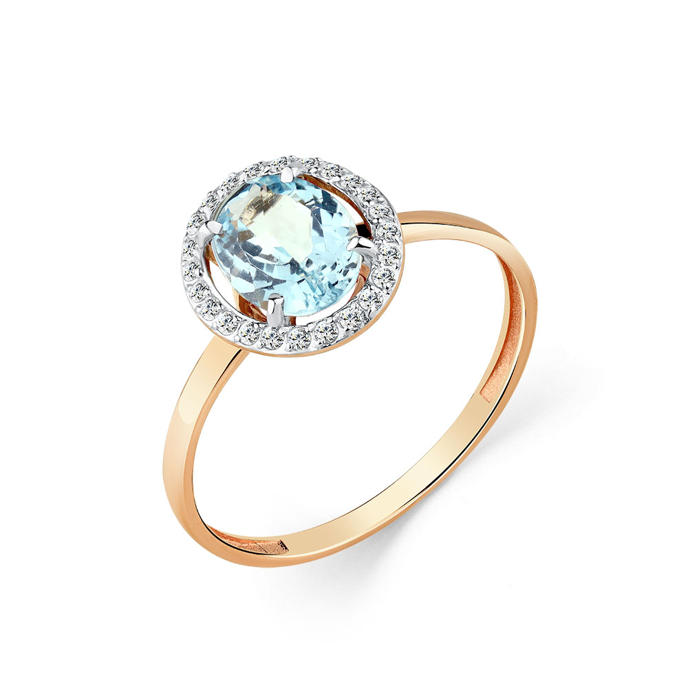 Утонченное кольцо с нежным голубым топазом и прозрачными фианитами выполнено из красного золота 585 пробы. Привлекательный изящный аксессуар обновит любой образ, удивляя своей нежной красотой и изумительным блеском камней, и станет изысканным дополнением женственного образа. Приобретайте кольцо в подарок по выгодным ценам в магазинах Мир Золота.