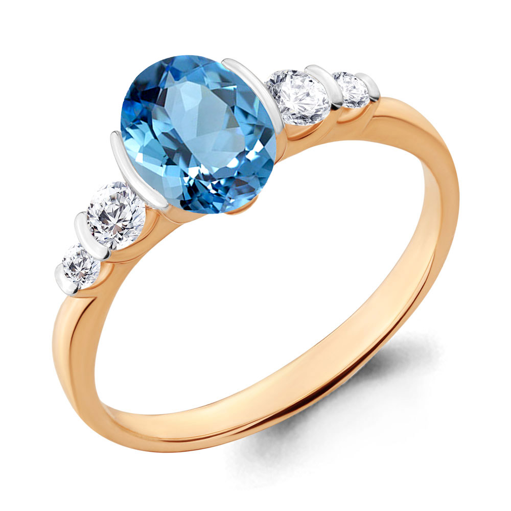 Очаровательное кольцо с крупным топазом swiss и вставками с искристыми фианитами выполнено из красного золота 585 пробы. Насыщенный притягательный блеск голубого камня приковывает внимание, кристальные фианиты подчеркивают и дополняют яркую красоту топаза. Дополните свой привлекательный образ изысканным акцентом, приобретайте украшение выгодно в магазинах Мир Золота.