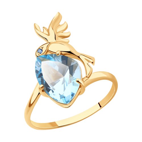 Оригинальный ювелирный дизайн кольца из красного золота 585 пробы, декорированного необыкновенным голубым топазом sky и цветным фианитом, приковывает внимание, и станет эффектным дополнением неповторимого образа. Стильное украшение с превосходным топазом небесного оттенка подчеркнет индивидуальность и изысканный вкус владелицы. Приобретайте необычное кольцо для своей коллекции или в подарок, выгодно в магазинах Мир Золота.