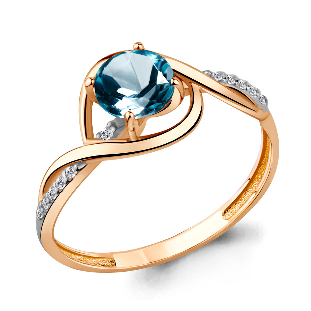 Изящный дизайн кольца из красного золота с натуральным топазом и дорожками с прозрачными фианитами привлекает к себе внимание. Нежное и женственное украшение с притягательным блеском топаза сделает образ женщины более изысканным и очаровательным. Приобретайте кольцо для себя или в подарок по выгодным ценам в магазинах Мир Золота.