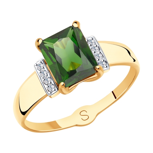 Женское кольцо из красного золота 585 пробы с эффектным зеленым ситаллом и прозрачными фианитами станет отражением безупречного стиля и элегантности. Крупный темно-зеленый ситалл выразительной формы огранки, подчеркнутый искристым блеском фианитов, привлекательно смотрится в своем объеме и насыщенном сиянии. Приобретайте достойное украшение в подарок по выгодным ценам в магазинах Мир Золота.