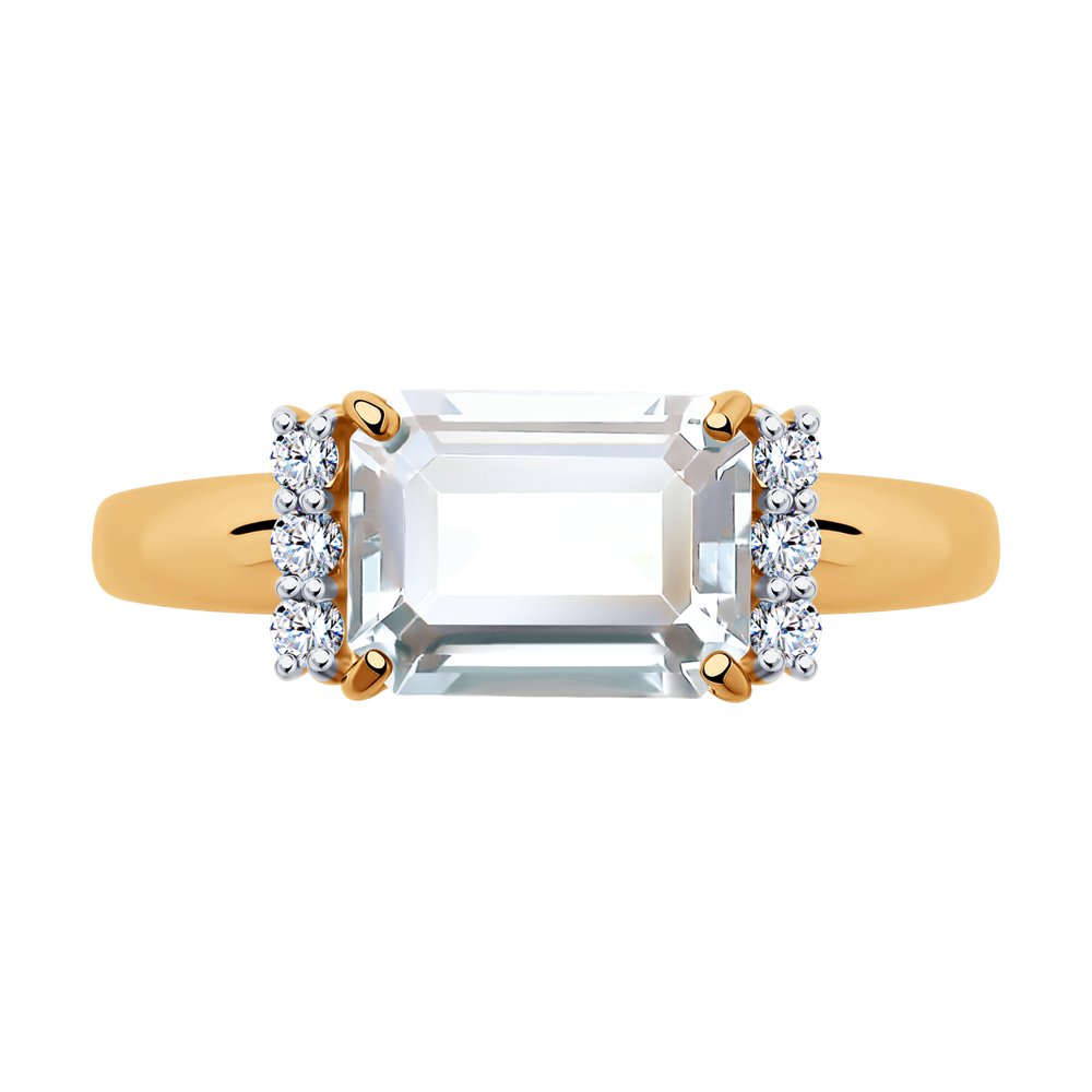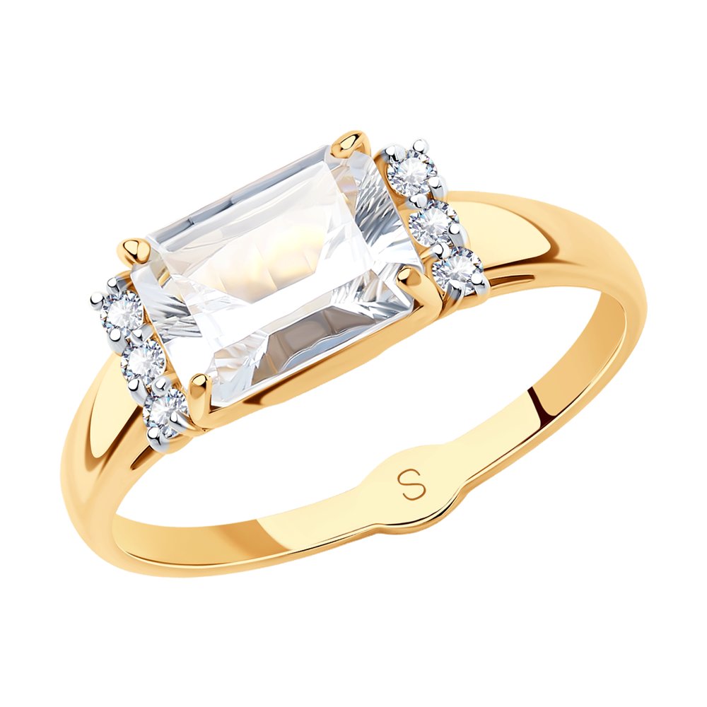 —Кольцо из красного золота с горным хрусталём и фианитами