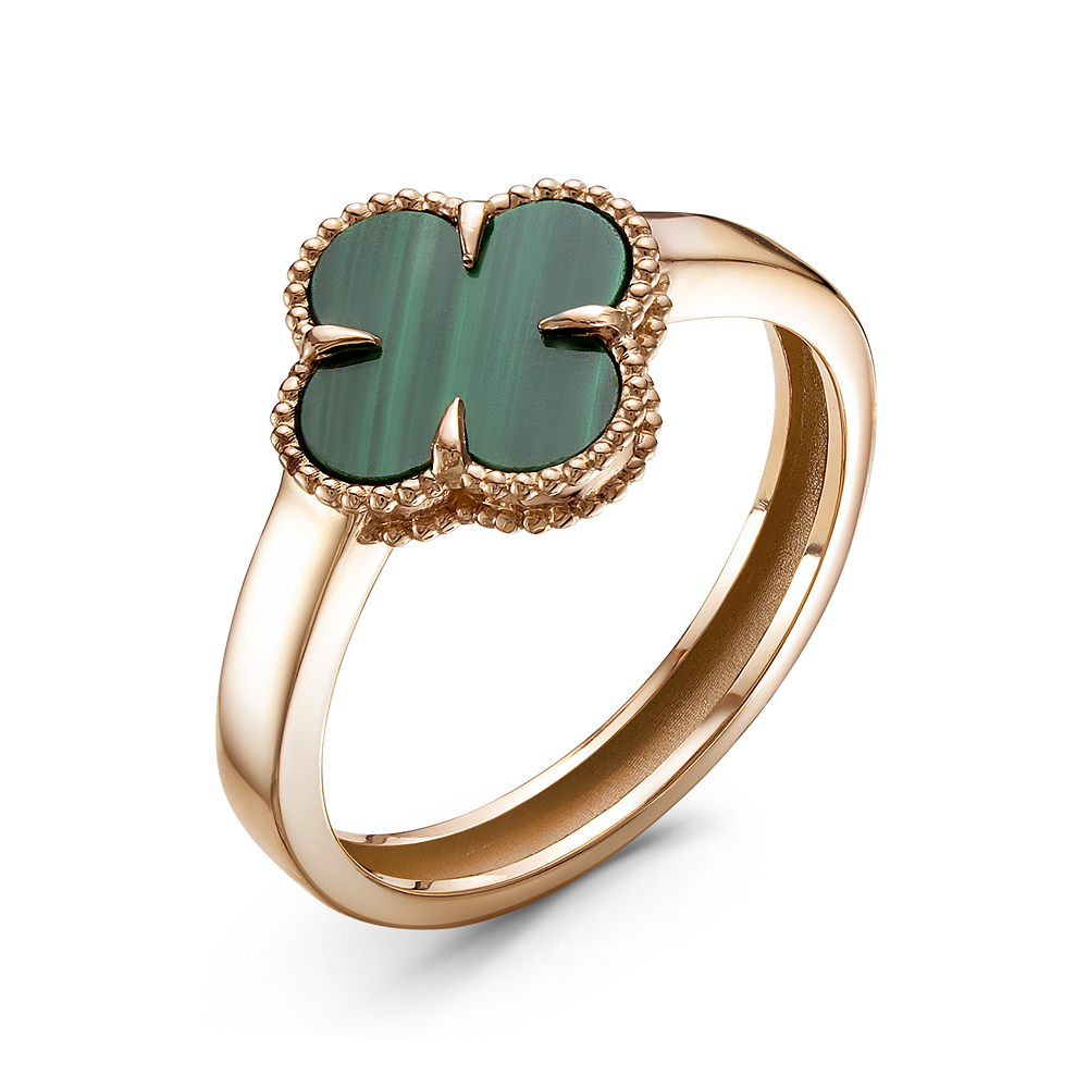 —Кольцо из красного золота с малахитом «Клевер»