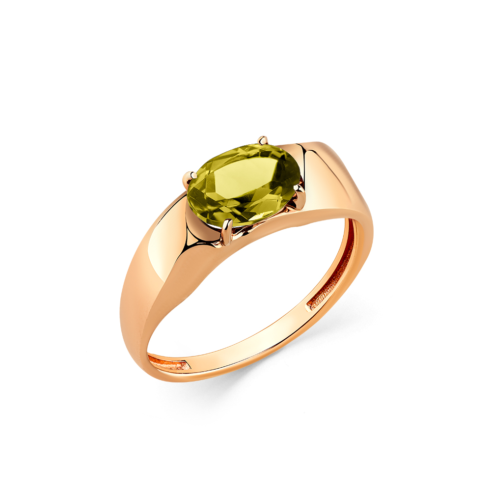 Кольцо лаконичного дизайна из красного золота 585 пробы украшено привлекательным султанитом. Яркий камень зеленого оттенка выигрышно смотрится на фоне глянцевого блеска золота. Украшение для любителей сдержанного стиля подойдет к любому гардеробу и будет прекрасным подарком для женщины. Приобретайте ювелирное украшение по выгодной цене в магазинах Мир Золота.