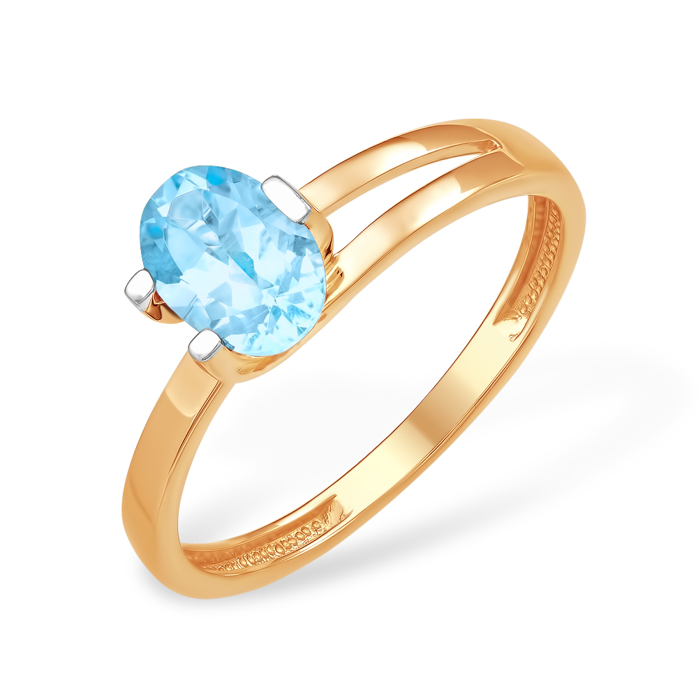 Кольцо современного ювелирного дизайна выполнено из красного золота 585 пробы и украшено привлекательным голубым топазом. Стильное украшение с нежным сиянием натурального камня эффектно смотрится на руке, и подчеркнет изысканность женского образа. Приобретайте ювелирное украшение в подарок по выгодной цене в магазинах Мир Золота.