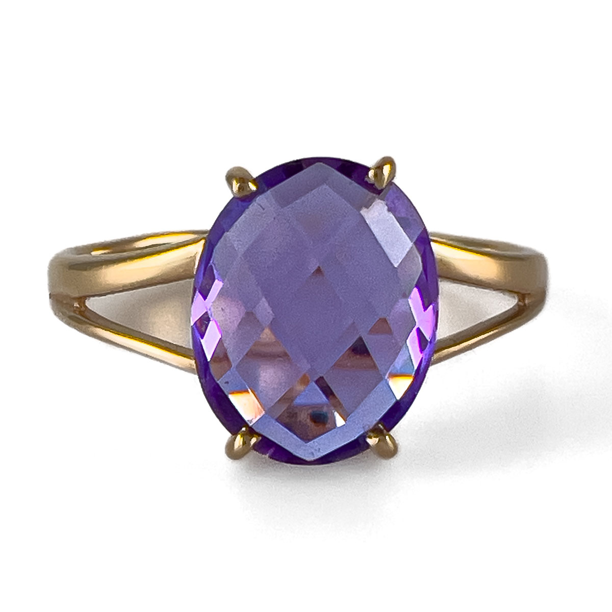 Эффектное фантазийное кольцо из красного золота с аметистом украсит женскую руку. Эстетичное, нежное и лаконичное, кольцо имеет ярко выраженный и насыщенный фиолетовый перелив. Помимо безупречного внешнего вида, кольцо отличается совершенно комфортной посадкой. Купите кольцо с аметистом в ювелирных магазинах Мир Золота.