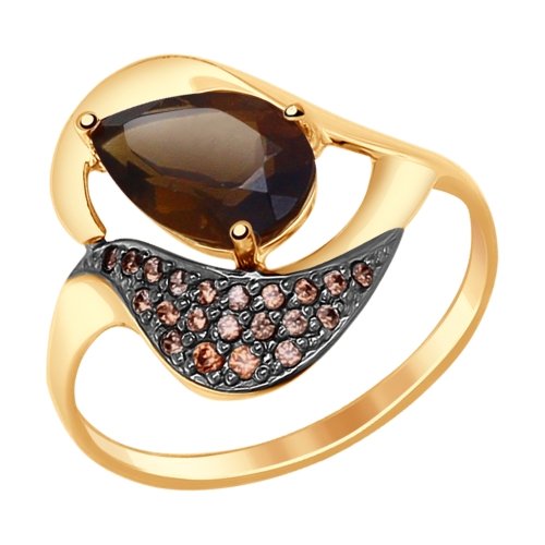 Очаровательное кольцо великолепного ювелирного дизайна из красного золота 585 пробы с прекрасным раухтопазом и россыпью цветных фианитов смотрится необычно и интересно. Изящное украшение с насыщенным блеском камней кофейного оттенка станет изысканным акцентом вечернего и нарядного образа, и подчеркнет истинную женственность и очарование владелицы. Приобретайте кольцо в подарок по выгодной цене в магазинах Мир Золота.