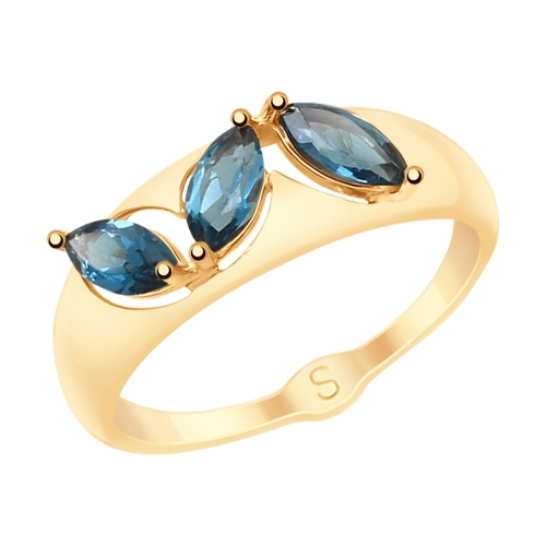 Привлекательное кольцо из красного золота 585 пробы декорировано натуральными топазами утонченной формы огранки. Эффектное сочетание благородного золота и завораживающего сияния лондон топазов сделает женский образ более изысканным и притягательным. Украшение будет идеальным подарком, подчеркивающим красоту и женственность владелицы. Приобретайте кольцо выгодно в магазинах Мир Золота.