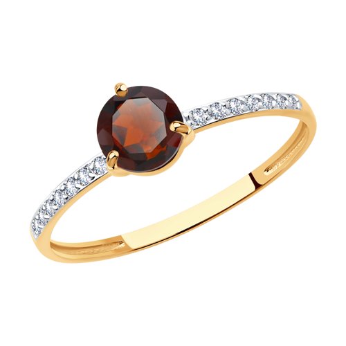 Кольцо из красного золота с гранатом и фианитами