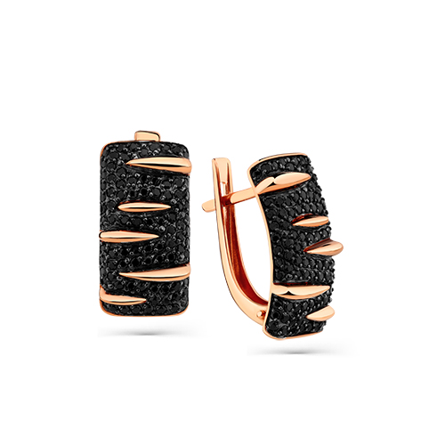 Эффектные серьги с россыпью камней синтетической шпинели выполнены в оригинальном ювелирном дизайне из красного золота 585 пробы. Стильные яркие серьги с завораживающим блеском черных камней привлекают внимание, и станут великолепным дополнением вечернего или коктейльного наряда. Приобретайте украшение для своей коллекции или в подарок по выгодным ценам в магазинах Мир Золота.