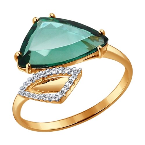 Изумительное кольцо изящного ювелирного дизайна из красного золота 585 пробы декорировано зеленым кварцем красивой формы огранки и прозрачными фианитами. Яркий камень привлекает внимание, и станет изюминкой женственного образа. Приобретайте ювелирное украшение в подарок по выгодной цене в магазинах Мир Золота.