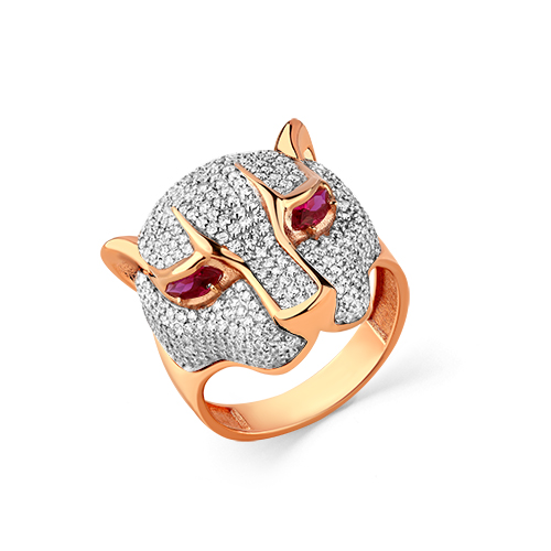Фактурное кольцо в виде головы пантеры, усыпанное притягательными прозрачными фианитами и украшенное рубиновыми корундами, станет оригинальным подарком близкому человеку. Трендовое кольцо в стиле известного мирового бренда доступно в классическом золотом исполнении от ювелирного бренда MAGIC STONES. С помощью этого кольца можно создать идеальный образ - будь это строгий офисный костюм, романтический лук для свидания или торжественный выход в свет.