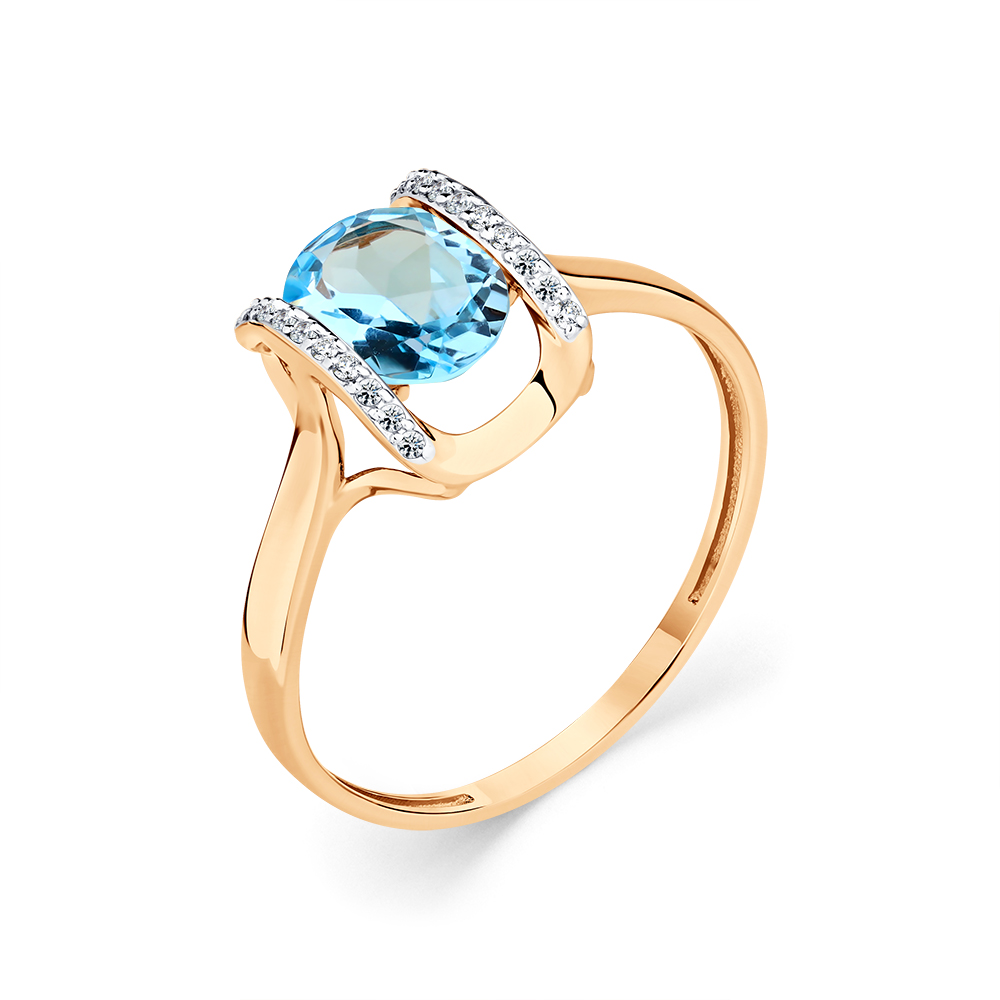 Безупречное кольцо с крупным нежно-голубым топазом, подчеркнутым искристыми фианитами, выполнено из красного золота 585 пробы в современном дизайне. Актуальное украшение покоряет своей красотой и прозрачным чистым блеском небесного топаза, и станет любимым аксессуаром в коллекции владелицы. Приобретайте украшение для себя или в подарок по выгодным ценам в магазинах Мир Золота.