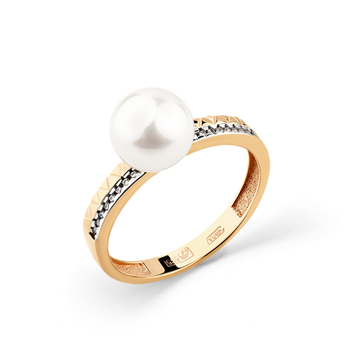 Привлекательное кольцо из красного золота 585 пробы эффектно декорировано превосходным белым жемчугом и прозрачными фианитами. Белоснежная жемчужина обращает на себя внимание, сияющие дорожки фианитов дополняют нежный блеск жемчуга. Элегантная красота камней вдохновляет на создание неповторимого женственного образа. Приобретайте ювелирное кольцо по выгодной цене в магазинах Мир Золота.