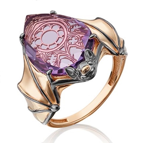—Кольцо из красного золота с аметистом «Летучая мышь»