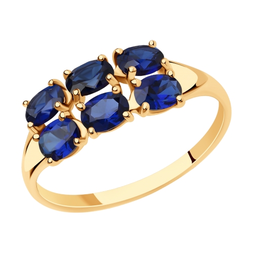 Кольцо из красного золота 585 пробы с синтетическими сапфировыми корундами овальной формы притягивает взгляд, и сделает женский образ более ярким и изысканным. Кольцо современного ювелирного дизайна с насыщенным блеском синих камней стильно смотрится, и станет прекрасным дополнением ювелирной коллекции владелицы. Приобретайте украшение в подарок по выгодной цене в магазинах Мир Золота.