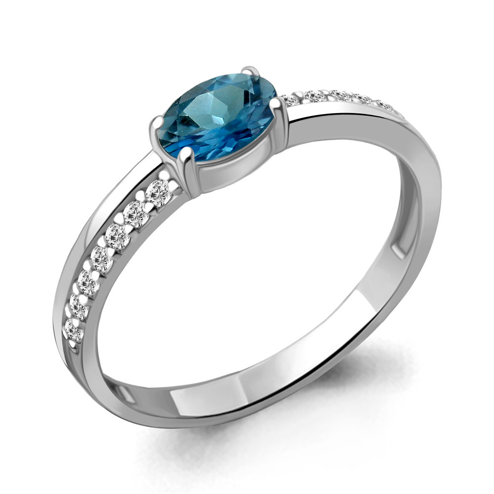 Элегантное кольцо из серебра покоряет внимание ярко-синим блеском топаза оттенка London Blue, который ассоциируется с роскошью и аристократизмом. Центральный камень окружают прозрачные фианиты, придающие изделию дополнительную игру света и чарующий эффект мерцания. Тонкая работа ювелира позволяет камню раскрыть всю свою природную красоту, выделяя мягкую текстуру и уникальный оттенок. Кольцо подходит как для ежедневного ношения, так и для торжественных мероприятий, подчёркивая изысканность и стиль своей обладательницы.