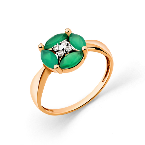 Кольцо из красного золота с агатом и фианитами