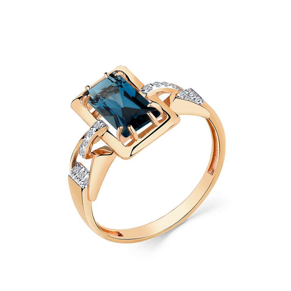 Кольцо из красного золота с топазом и фианитами