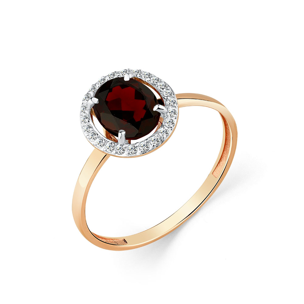 Кольцо из красного золота с гранатом и фианитами