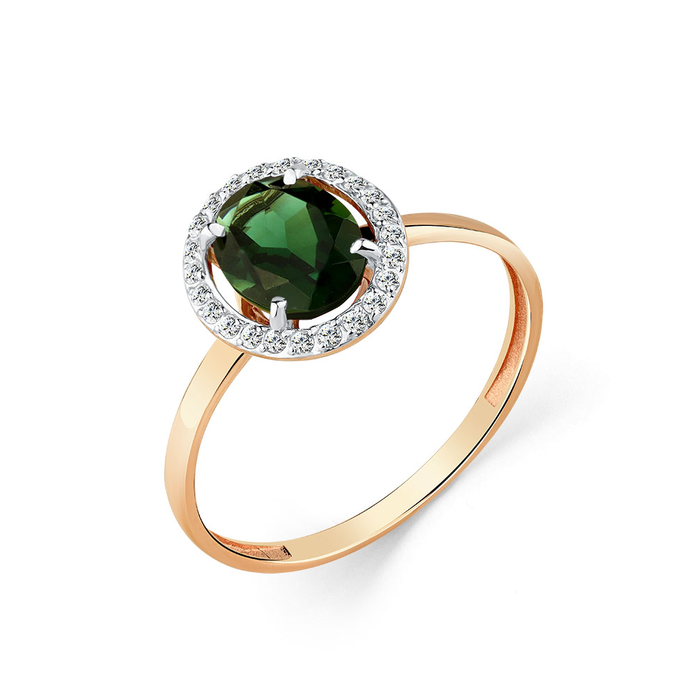 Кольцо из красного золота с турмалином и фианитами