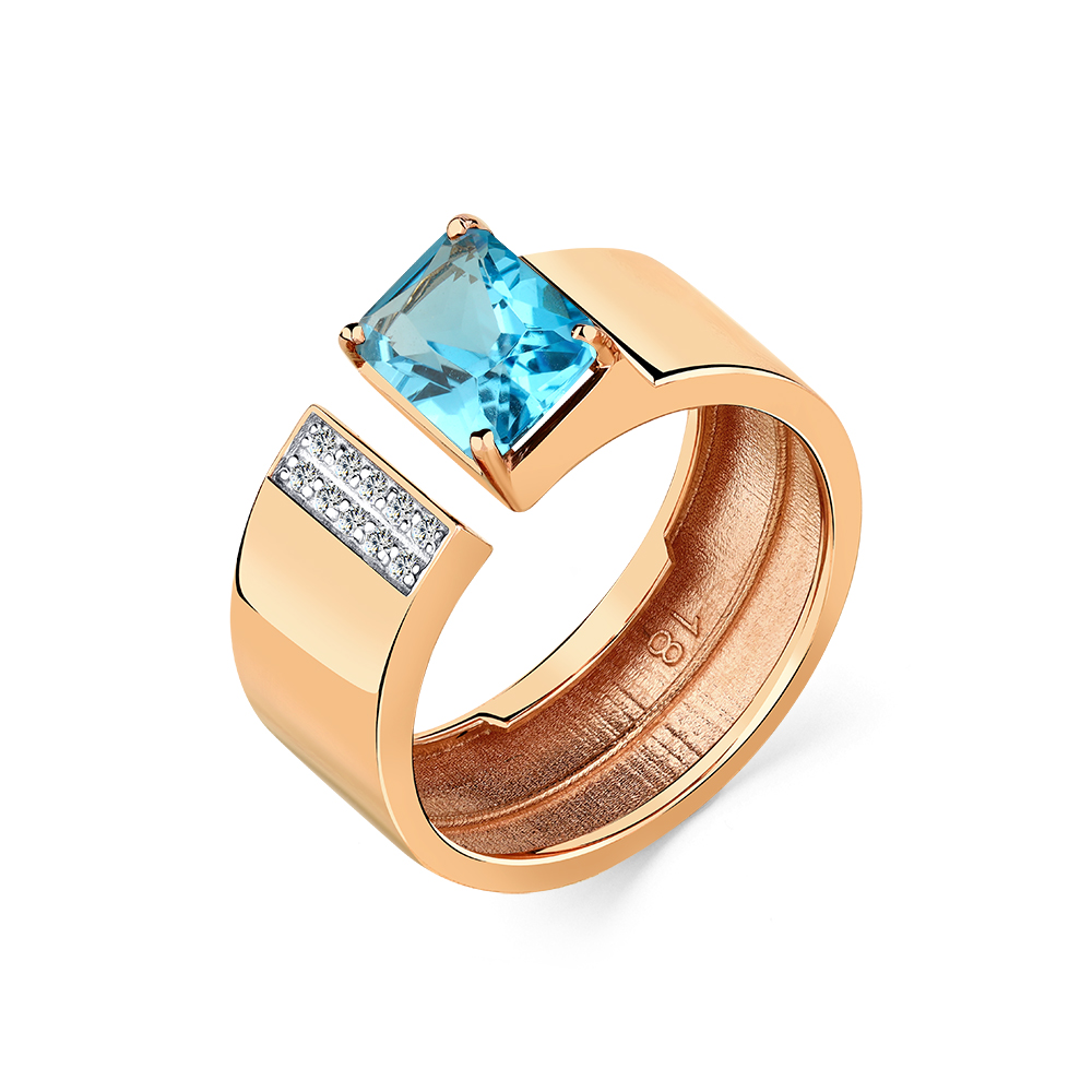 Кольцо из красного золота с топазом и фианитами