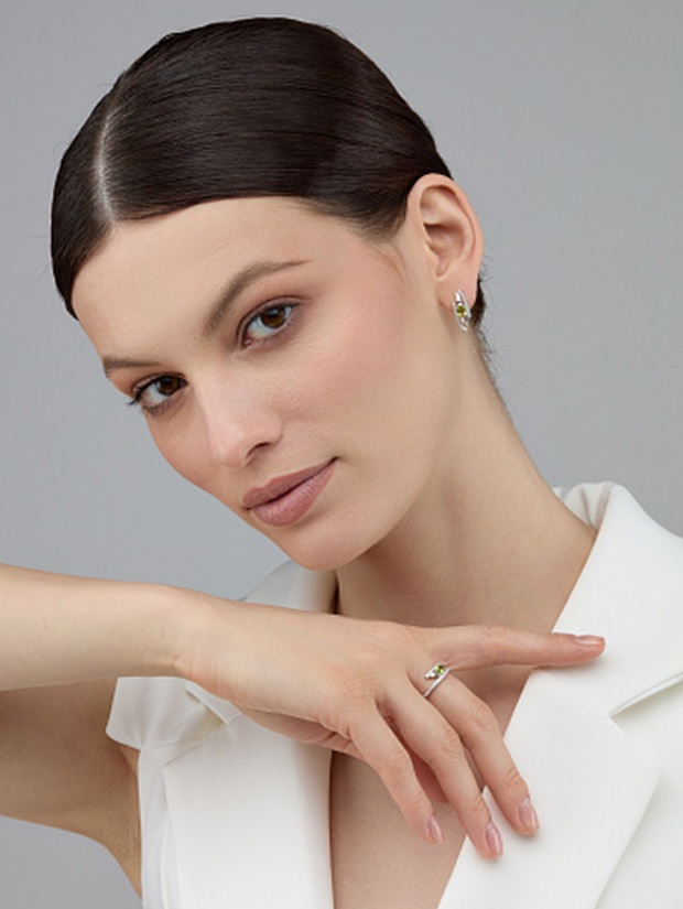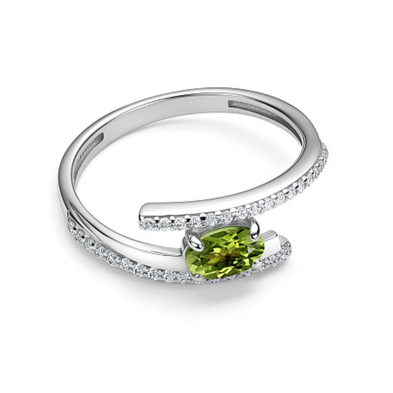 Кольцо из серебра с хризолитом и фианитами — прекрасное ювелирное украшение, сочетающее благородство металла и очарование камней. Хризолит символизирует удачу и благополучие. Фианиты создают эффект мерцания, делая кольцо визуально привлекательным и роскошным. Такое украшение отлично дополнит любой стиль, будь то классический деловой костюм или праздничный наряд, придавая образу индивидуальность и изысканность.