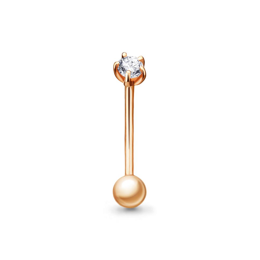 Пирсинг из красного золота с фианитом