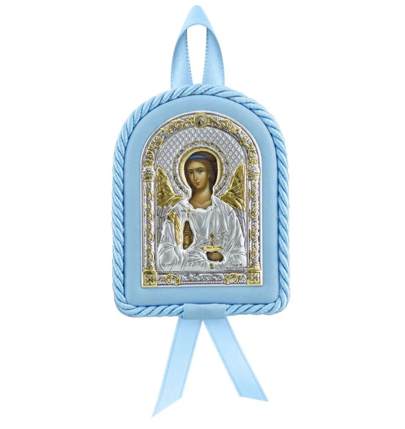 Икона детская крестильная «Ангел Хранитель» для мальчика. Икона воспроизведена с типичными цветами иконографии, с применением покрытия вакуумного напыления серебра. Основа иконы - МДФ, имеется крепление на стену и откидная ножка-подставка. Икона будет отличным подарком для ребенка, крестника. Покупайте ювелирные изделия исключительного качества по привлекательной цене в магазинах Мир Золота.