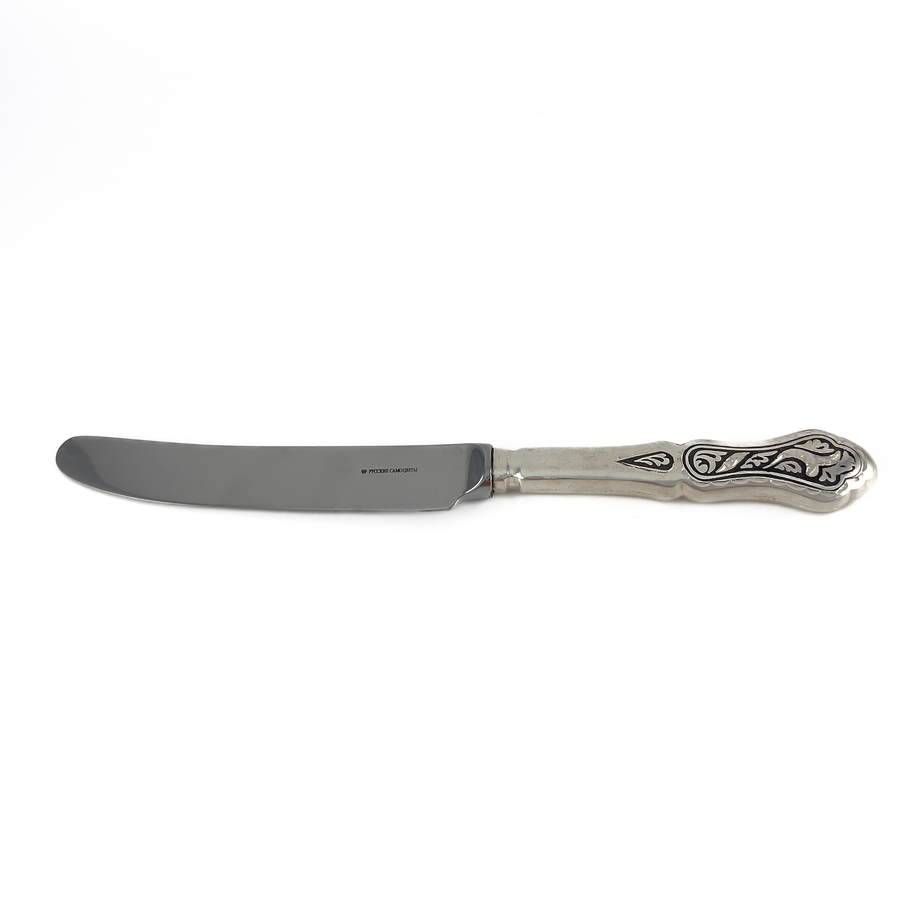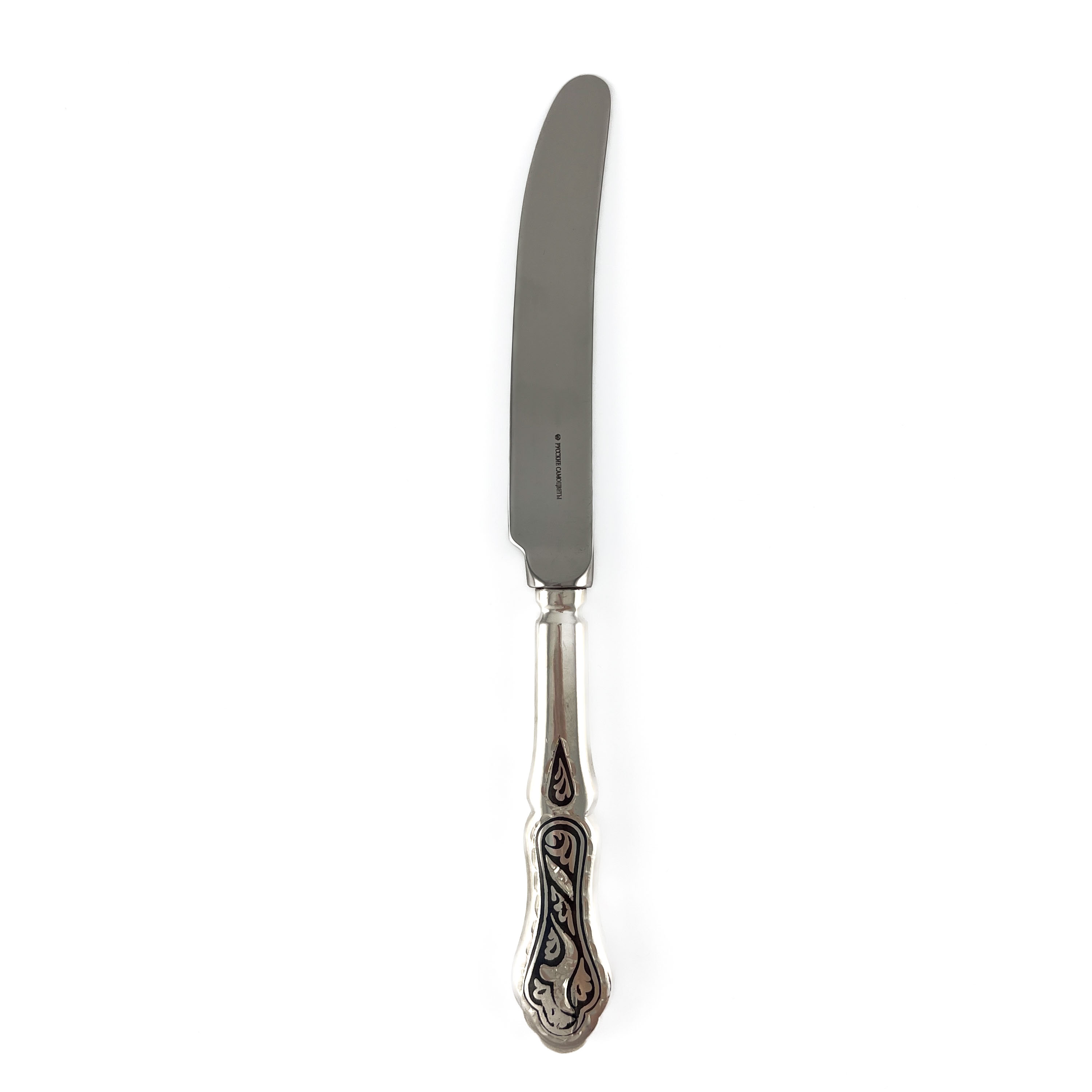 Столовый нож из серебра всегда выделяется как признак вкуса и изящных манер, ведь именно серебро – показатель качества и красоты. Этот серебряный нож с интересным узором может стать практичным столовым прибором и подобранным со вкусом подарком настоящему гурману. Купите нож из качественного серебра по выгодной цене в магазинах Мир Золота.
