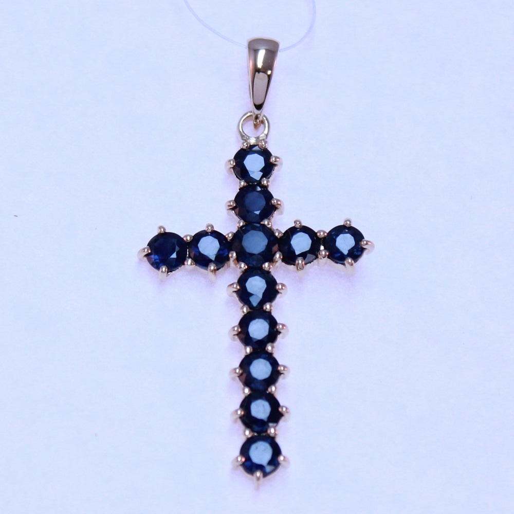 Декоративный крестик выполнен из золота 585 пробы и украшен натуральными сапфирами. Эффектная подвеска с чудесными насыщенными сапфирами круглой огранки станет стильным декоративным элементом на каждый день и надежным оберегом для его владелицы. Приобретайте прекрасное украшение по выгодным ценам в магазинах Мир Золота.