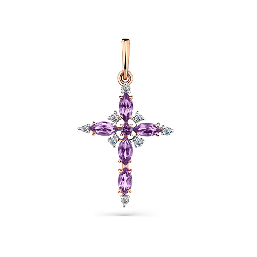 —Декоративный крестик из красного золота с аметистами и фианитами