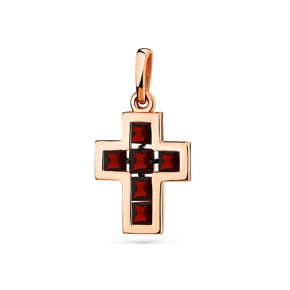Декоративный крестик с гранатами, выполненный из красного золота 585 пробы в стильном дизайне. Эффектные гранаты квадратной формы огранки обращают на себя внимание, и великолепно дополняют выразительный образ украшения. Подвеска придется по вкусу любителям строгих форм и минимализма. Приобретайте ювелирное украшение по выгодным ценам в магазинах Мир Золота.