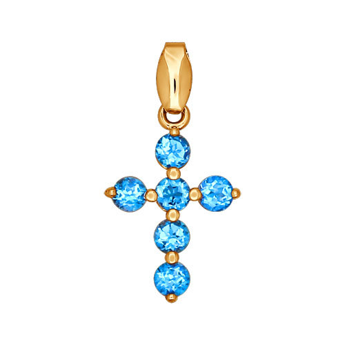 Миниатюрный декоративный крестик украшен круглыми топазами swiss, выполнен из красного золота 585 пробы. Изящное украшение с нежным сиянием голубых камней насыщенного оттенка замечательно смотрится, и станет изысканным акцентом привлекательного женского образа. Приобретайте декоративный крестик для себя или в подарок по выгодной цене в магазинах Мир Золота.