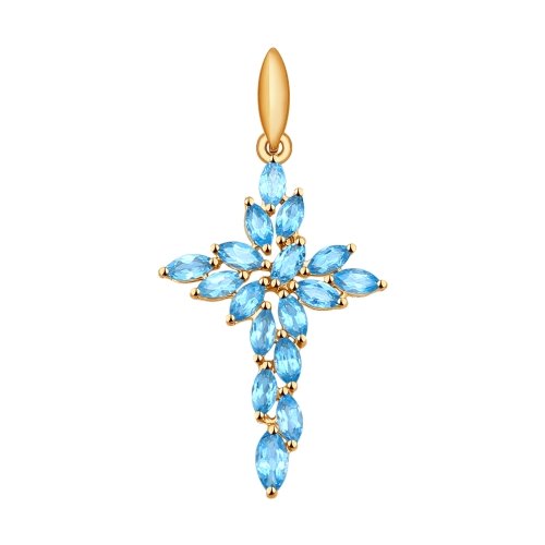 Восхитительная подвеска в виде декоративного крестика из голубых топазов утонченной формы огранки смотрится очень привлекательно и изысканно. Изящное и нежное украшение из красного золота покоряет с первого взгляда, чудесные топазы красиво переливаются на свету. Подвеска идеально подойдет для тонкой цепочки, и будет замечательным подарком для ваших любимых. Приобретайте украшение выгодно в магазинах Мир Золота.