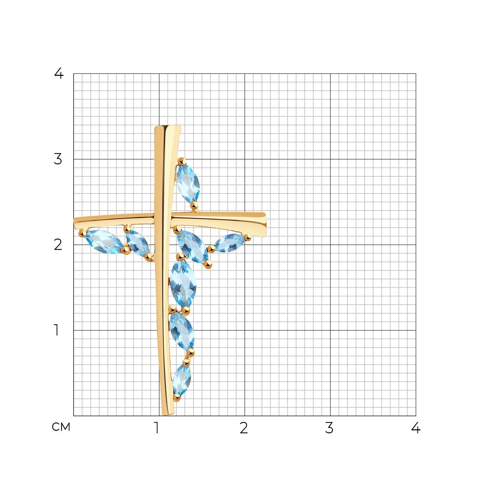 Подвеска в виде утонченного крестика из красного золота 585 пробы, изящно декорированного голубыми топазами изысканной формы огранки. Оригинальное украшение с нежным сиянием прекрасных топазов стильно и эффектно смотрится, и станет идеальным завершением современных образов обладательницы. Покупайте актуальное украшение в подарок по выгодной цене в магазинах Мир Золота.