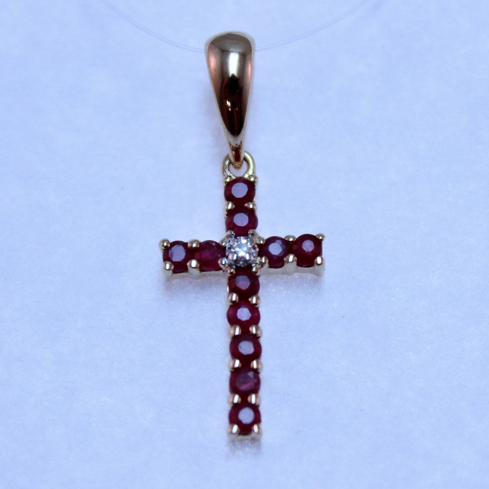 —Декоративный крестик из красного золота с рубинами и бриллиантом