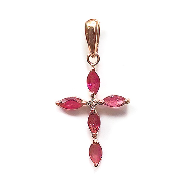 —Декоративный крестик из красного золота с рубинами и бриллиантом