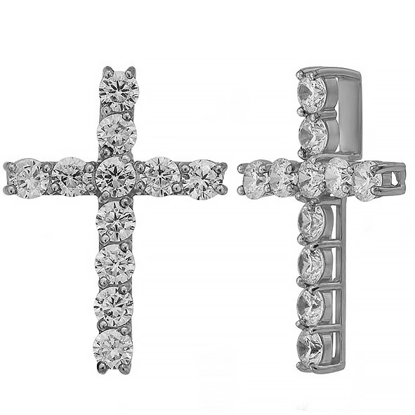 Декоративный крестик из родированного серебра 925 пробы инкрустирован прозрачными фианитами. Кристальный блеск камней в оправе из серебристого металла привлекает внимание, и делает украшение яркой изюминкой женственного образа. Приобретайте серебряную подвеску для себя или в подарок по выгодным ценам в магазинах Мир Золота.